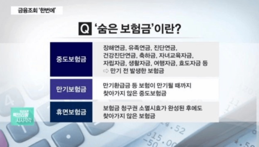 숨은 보험금은 3가지가 있습니다. 1. 중도 2. 만기 3. 휴면 보험인데요.